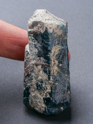 A cluster of intergrown greyish-green-blue, Apatite crystals, to 42 mm, are partially encased in yellowish Siderite and Ferberite crystals.A cluster of intergrown greyish-green-blue, hexagonal Apatite crystals, to 42 mm, are partially encased in yellowish Siderite and Ferberite crystals. The exposed prism faces of the Apatite crystals are very lustrous. Stands well - a good inexpensive example. Most crystals are complete and undamaged, but two main crystals are bruised.