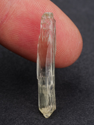 This is a small gem quality straw yellow danburite crystal typical from Malkhan. Its color is a beautiful highly saturated yellow with a good crystal shape. The termination of the crystal is chipped.