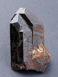 This is a strange and gorgeous combination specimen from Dalnegorsk. It features a very large (4.4 cm) compound crystal of sphalerite on quartz crystal. This specimen has a cut base.