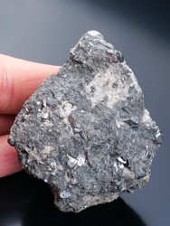 This is a XXL terminated, battleship-gray, bright bournonite crystal. However, the size of the crystal along with its relative rarity overcome the damage. In person, the damage is minimal and the aesthetics oustanding.