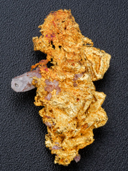 Small crystals of gold on the matrix from the Czech republic. Up to 2.0 mm long, shiny crystals of gold on the matrix. The sample comes from the Zlaté Hory (Golden Mts.). Found in 1966!