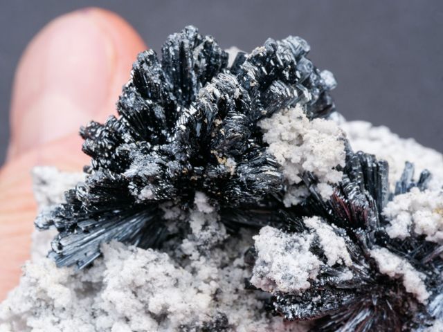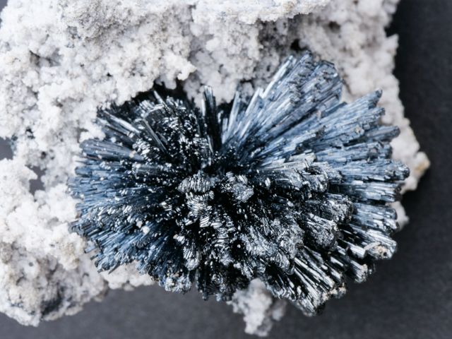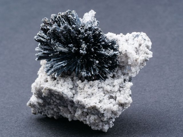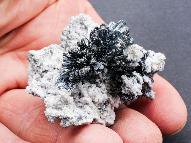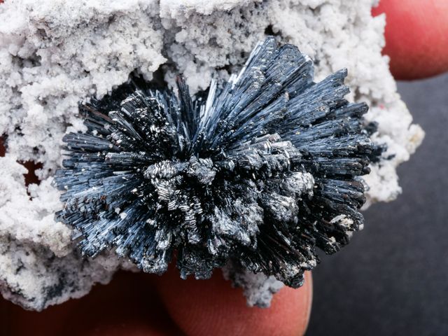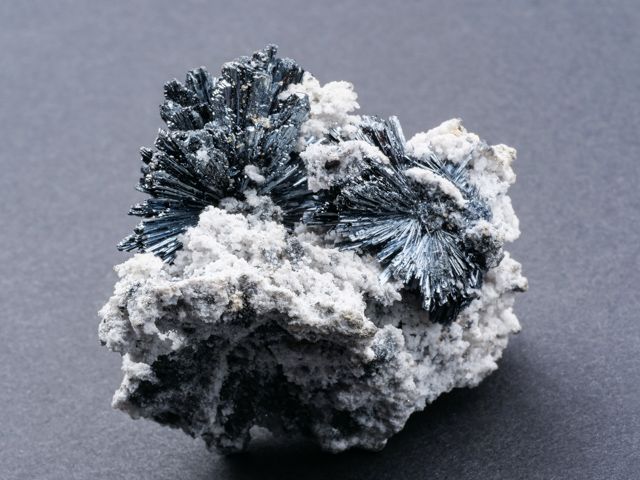 A relatively small specimen of impressive, classically-formed stibnite spears to 1.3 cm rising from solid stibnite matrix.A relatively small specimen of impressive, classically-formed stibnite spears to 1.3 cm rising from solid stibnite matrix. Considering its size and age, it has remarkably little damage. For Romania, it is really good.