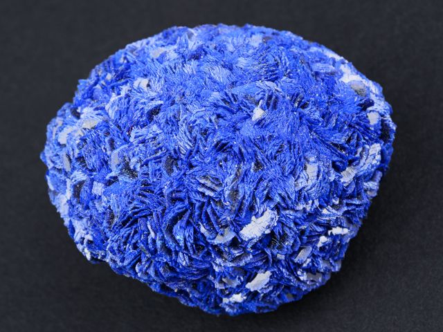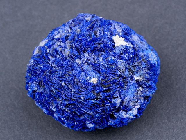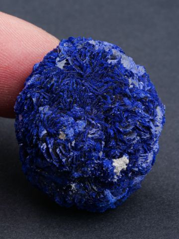 A beautiful, intense blue azurite from Rubtsovskiy Mine. Azurite is relatively rare for this mine, despite its wealth of copper mineralization, and the saturated color of the azurite "balls" found here really rank them highly compared to other locations. This piece is very beautiful, and is complete all around. Real color of this stone is darker than on our photos.