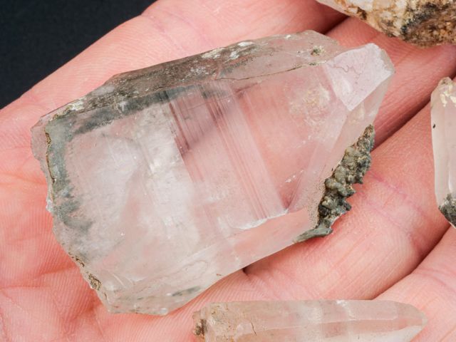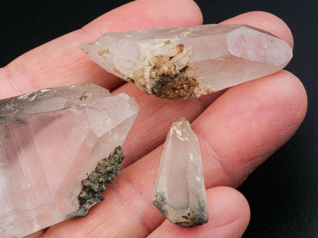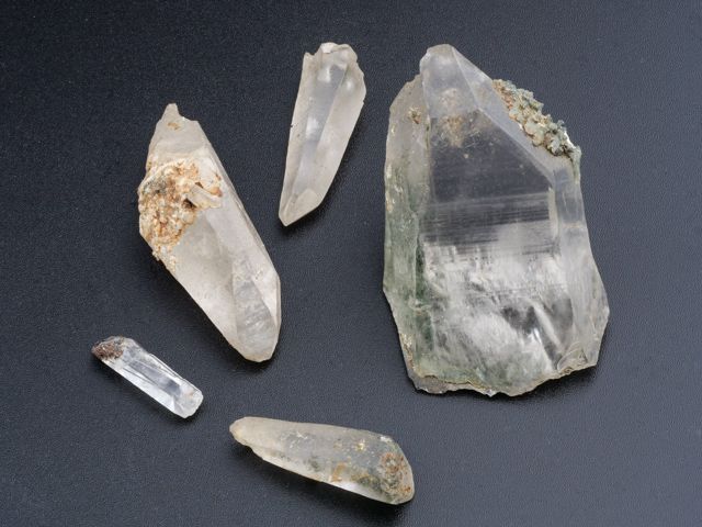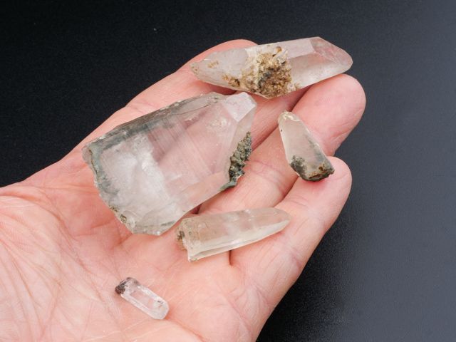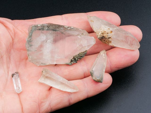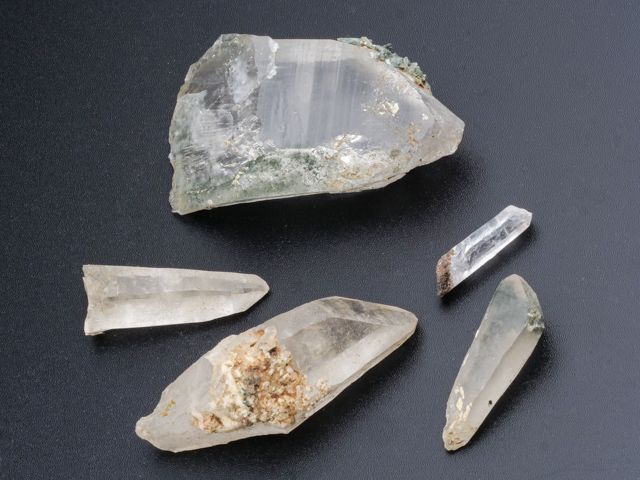5 ks krystalů křišťálu s chloritem ve spodní části z lokality Krásné u Šumperka.5 ks krystalů křišťálu s chloritem ve spodní části z lokality Krásné u Šumperka. Kameny nesou drobné známky poškození (některé v ukončení, některé na hranách). Přesto kameny v této kvalitě z domácí lokality považujeme za pěkné vzorky. Sběr v roce 1955 !!! Etiketa původního majitele součástí. Váha největšího kamene je 36,7 g, velikost největšího kamene 5,3x3,4x2,0 cm.