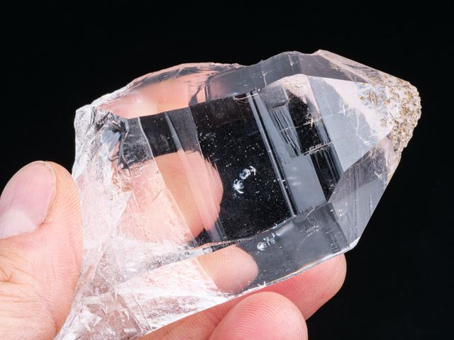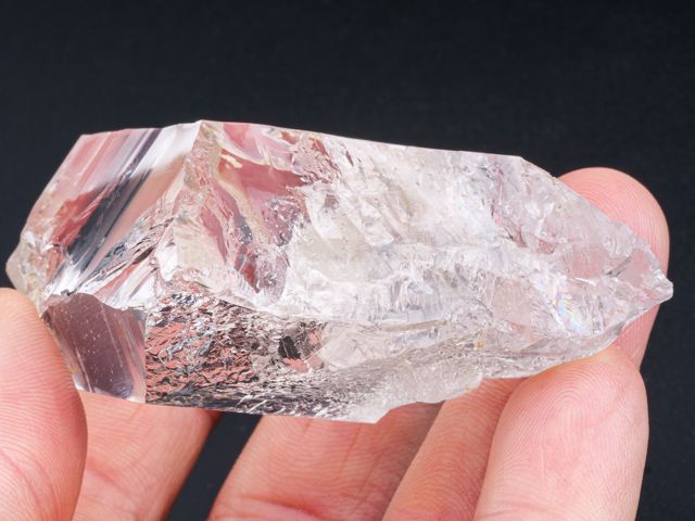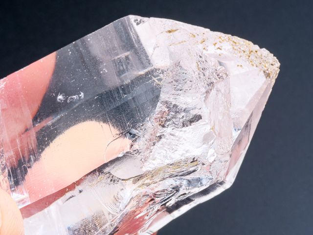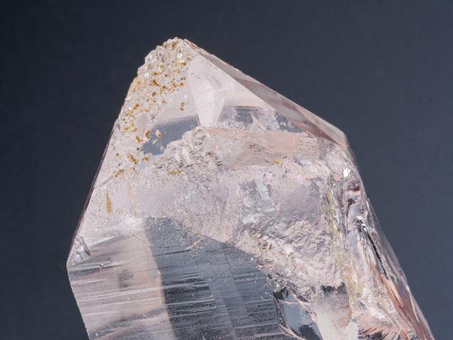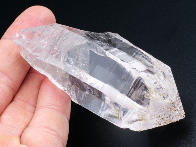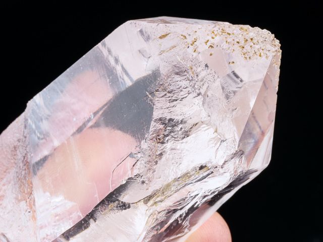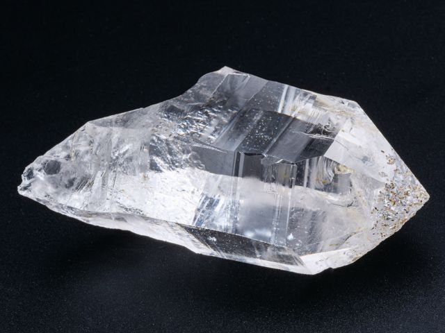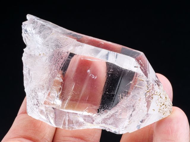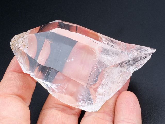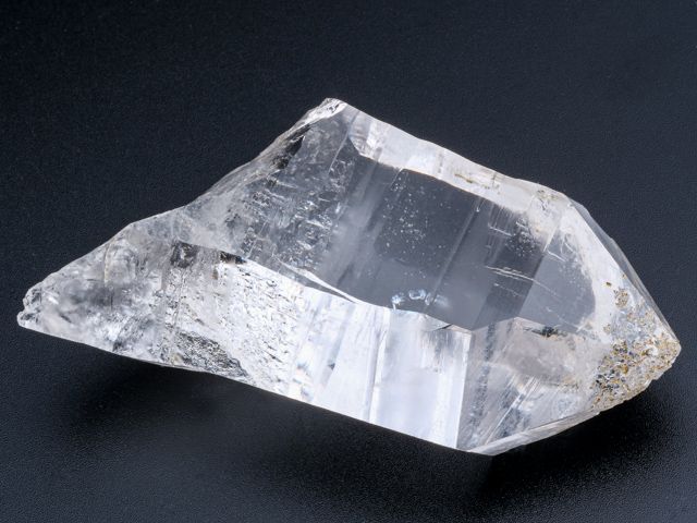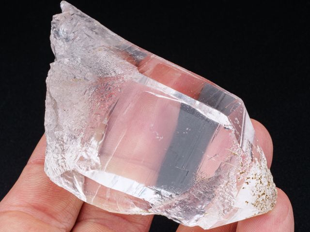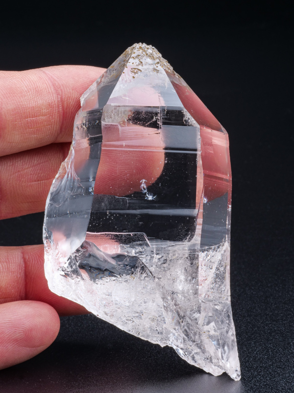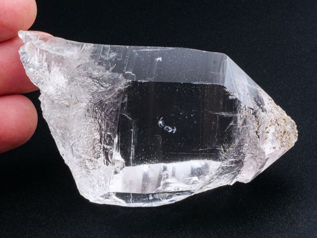 This is amazing stuff - lustrous quartz crystal. This terminated quartz crystal has and great luster, superb growth marks and great clarity. Prizm is damaged.