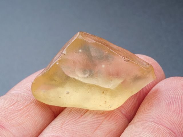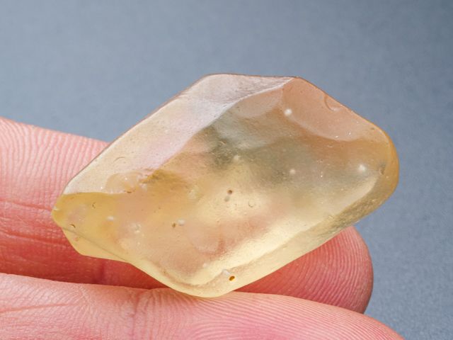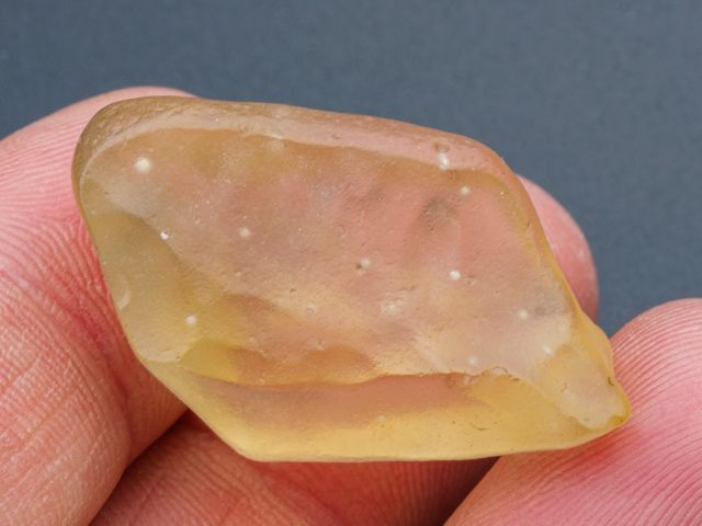 Lovely 8.8 g Libyan Desert Glass Specimen. It has tons of deep regmaglypts like dimples all around - a really neat and interesting piece! No damage.