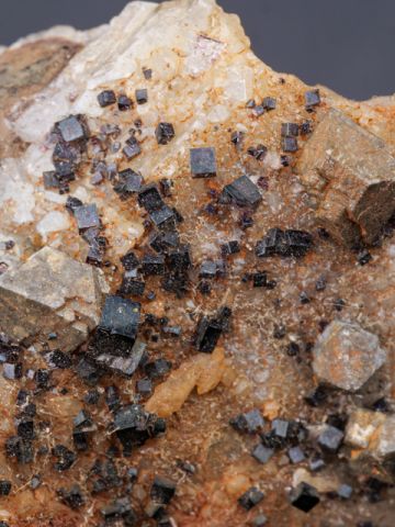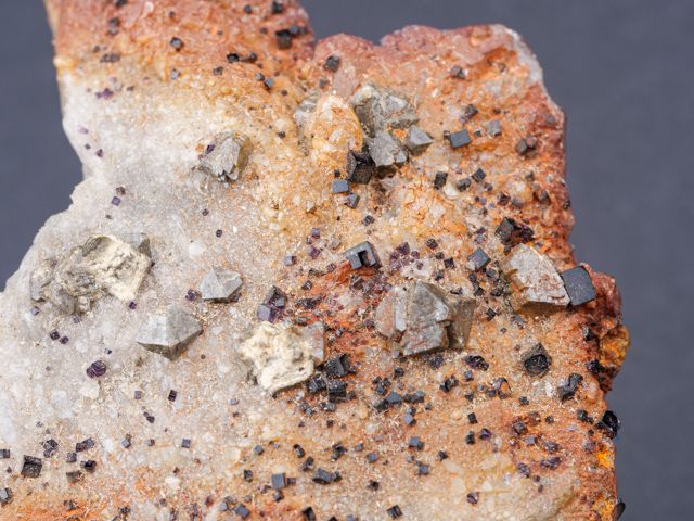 Very nice quartz crystals, fluorites and scheelite on matrix from Cínovec.Very nice quartz crystals, fluorites and scheelite on matrix from Cínovec.