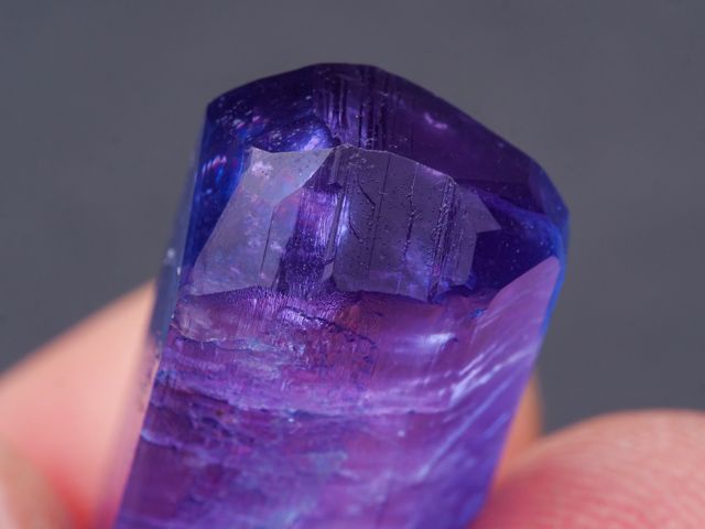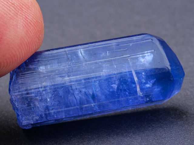 Velký krystal tanzanitu z lokality Merelani v Tanzánii. Krystal je ukončený v neporušeném skvělém stavu. Velmi sytá barva a hezký tvar!