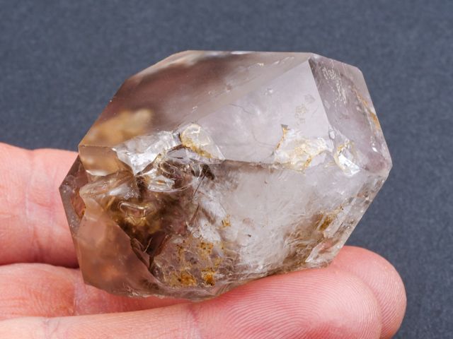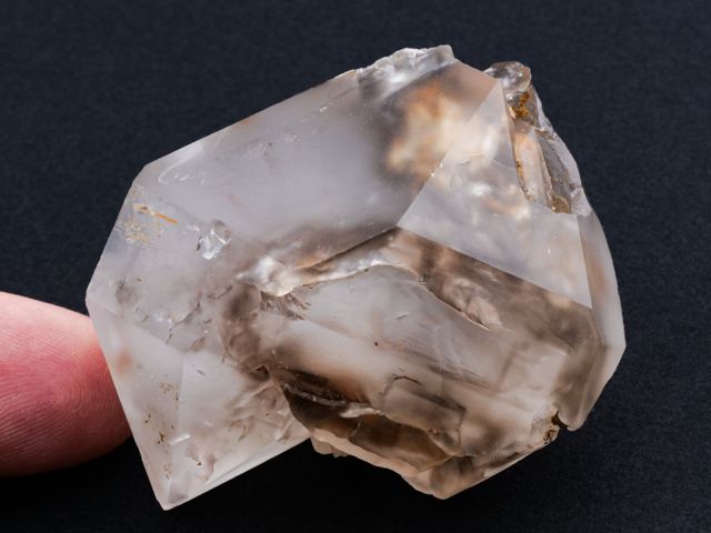 Krásný oboustranně ukončený krystal ze Skleného nad Oslavou. Krystal je 5,3 cm velký, částečně lesklý, částečně matný, ale e průsvitný. Jedná se o starý sběr. Krystal je v podstatě plová, ale má staré kontaktní místo / násedové plochy, kde přirůstal k vedlejším krystalům. Několik menších setření, ale nic vážného.