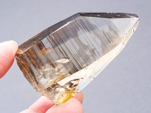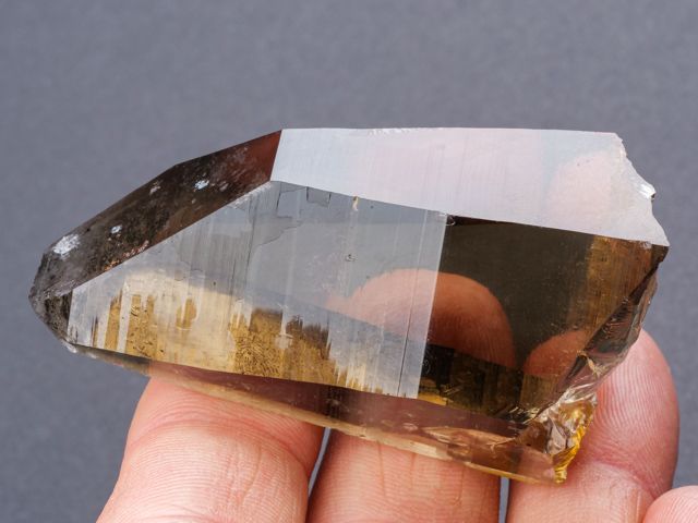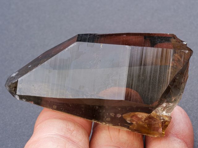 A single lustrous crystal from Južnyj, Polar Ural. Crystal is complete all around - terminated.A single lustrous crystal from Južnyj, Polar Ural. Crystal is complete all around - terminated. This is a very good smoky quartz for this locality in particular and for any russian locale. No damage.